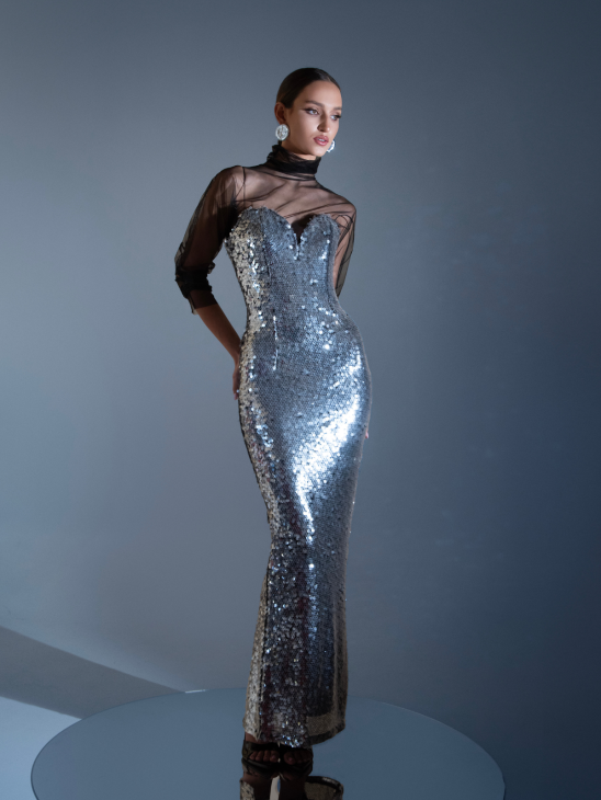 A celebration of mystery and radiance, where the darkness meets the stars in the night. This collection captures the essence of elegance through textures that transform shadow into spectacle.